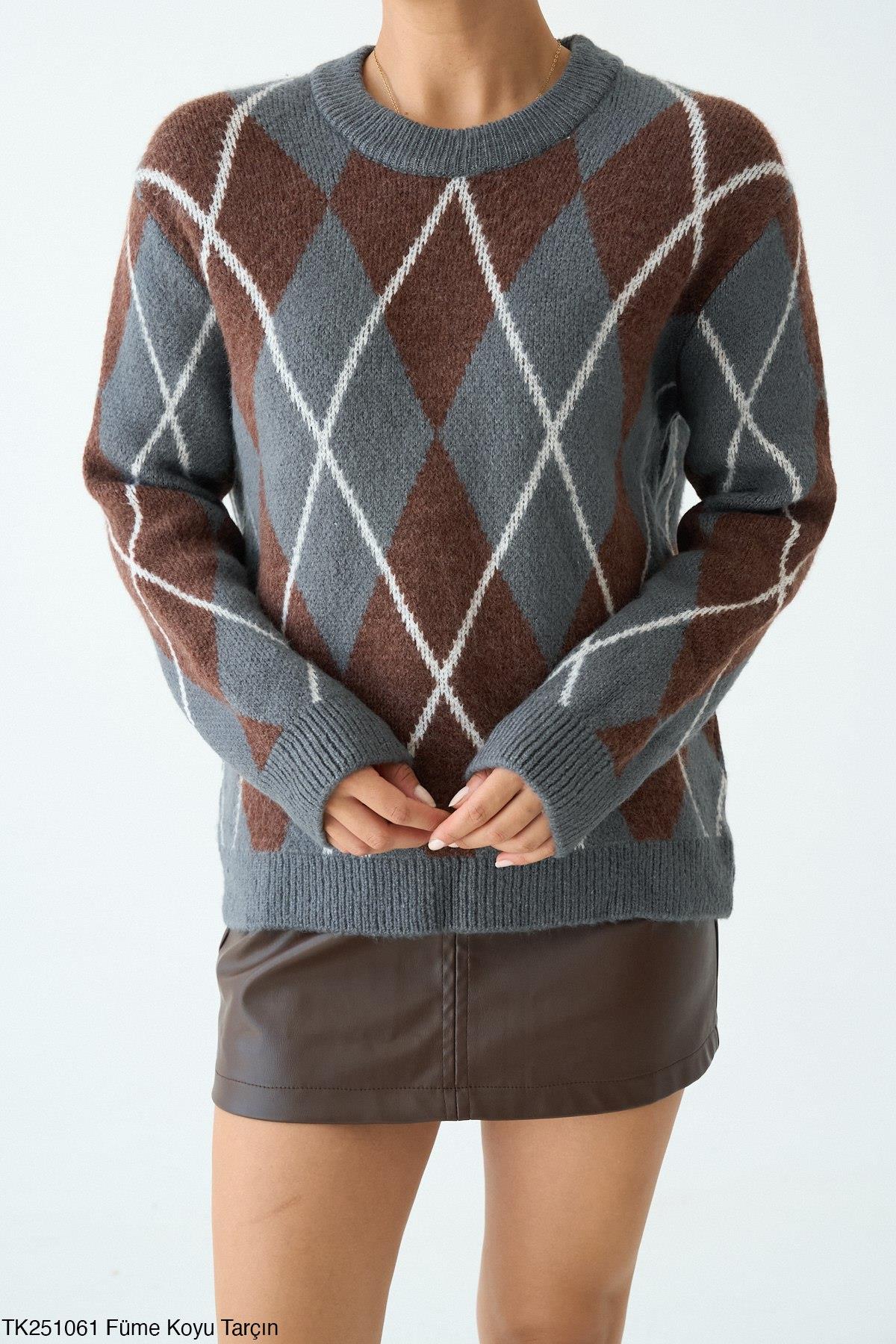 Baklava Desen Bisiklet Yaka Kazak QS251061