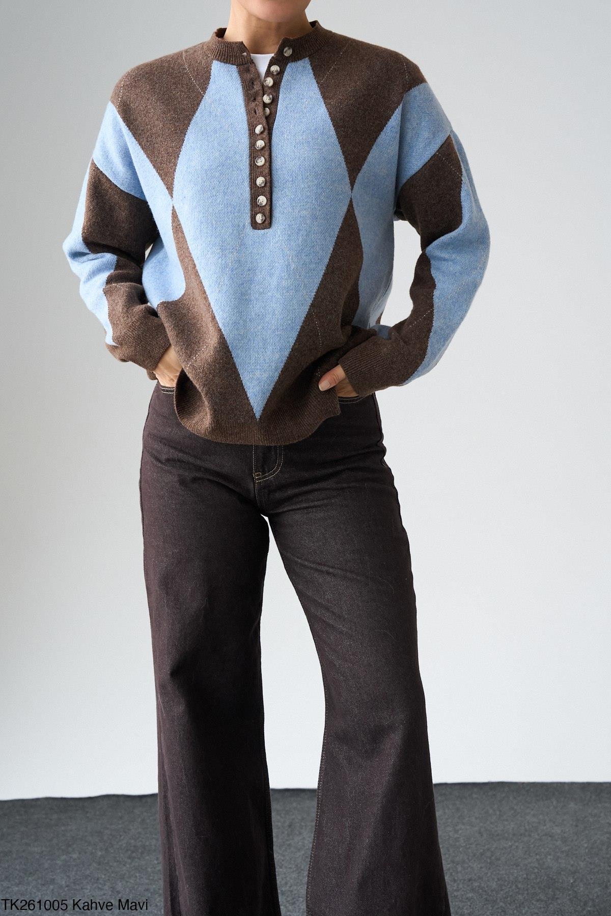 Baklava Desen Düğmeli Kazak QS261005
