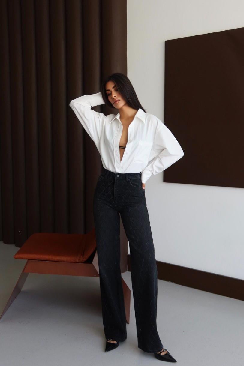 Baklava Desen Taşlı Wide Leg Jean LC7714