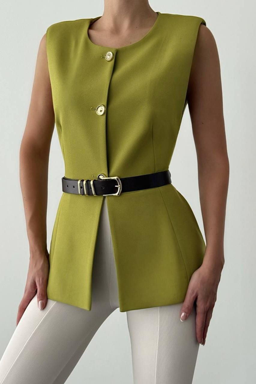Bisiklet Yaka Gold Düğmeli Kemerli Yelek QZ00163