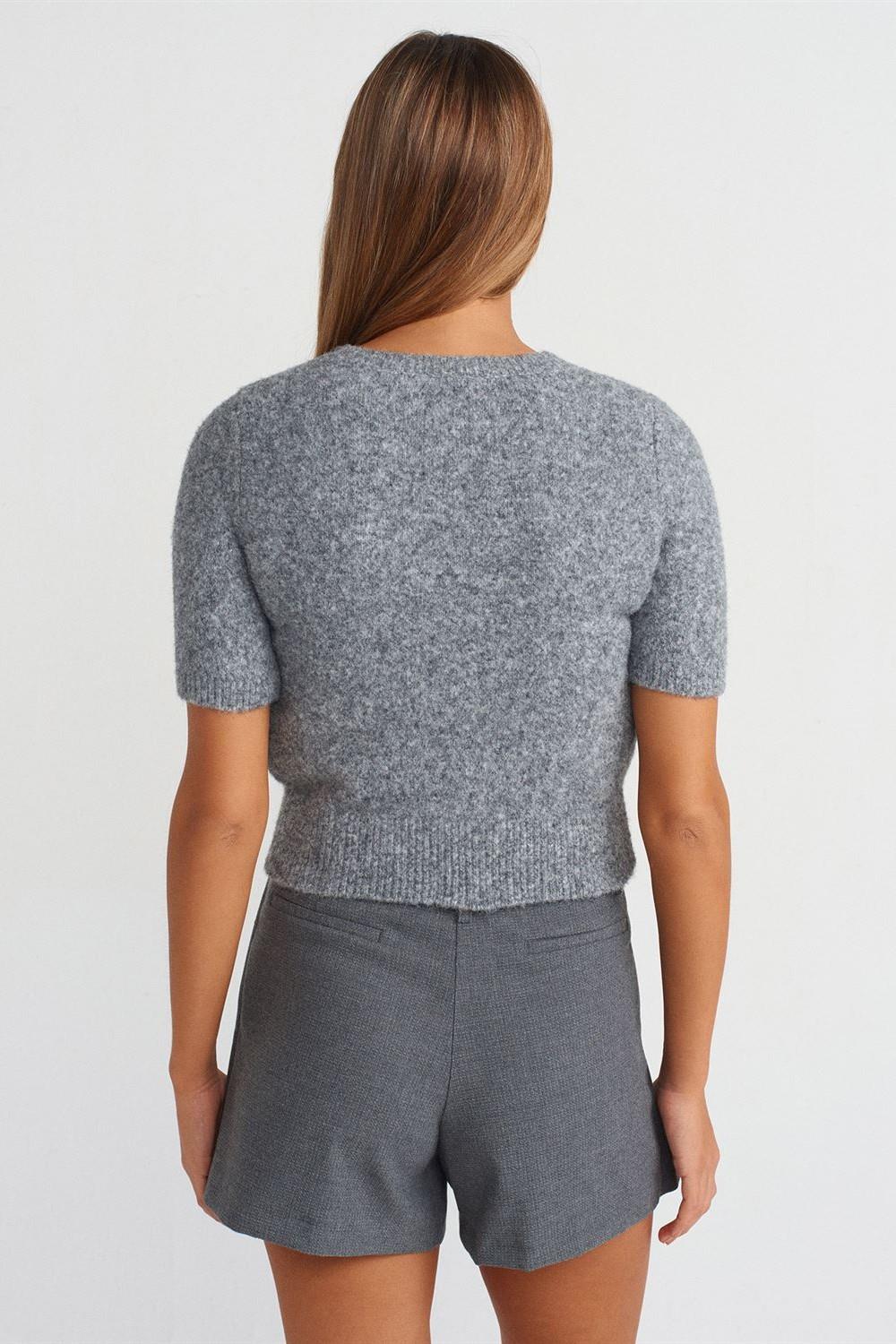 Bisiklet Yaka Yumuşak Dokulu Kısa Kollu Kazak DL10651