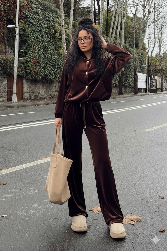 Çıtçıt Detaylı Kadife Ceket Pantolon Takım REY30109
