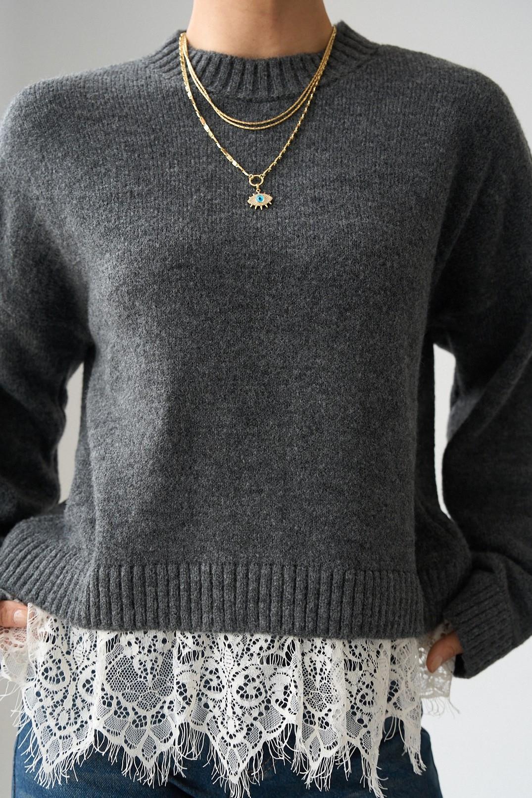 Dantel Detaylı Geniş Kol Triko Kazak QS261114