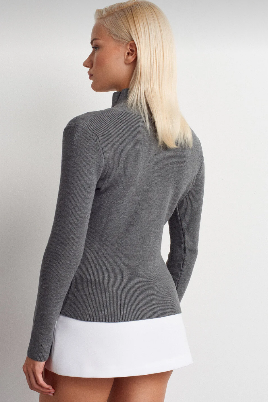Dik Yaka Çıtçıtlı Triko Kazak DL10686