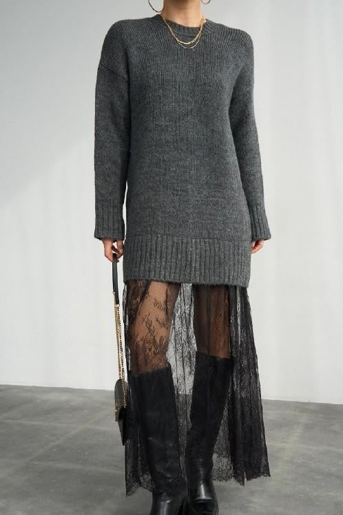 Etek Ucu Tül Triko Elbise QS251009