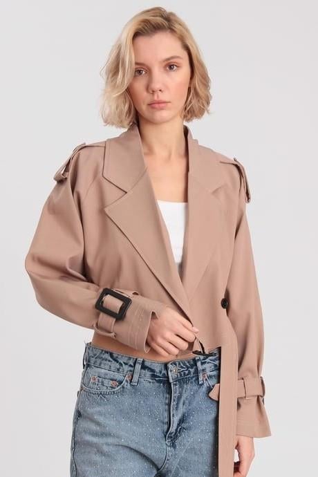 İç Astarı Çizgili Kemerli Oversize Kısa Ceket PR9306 (5K1PR0089306)