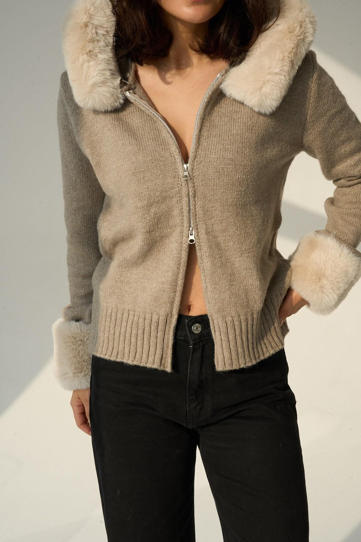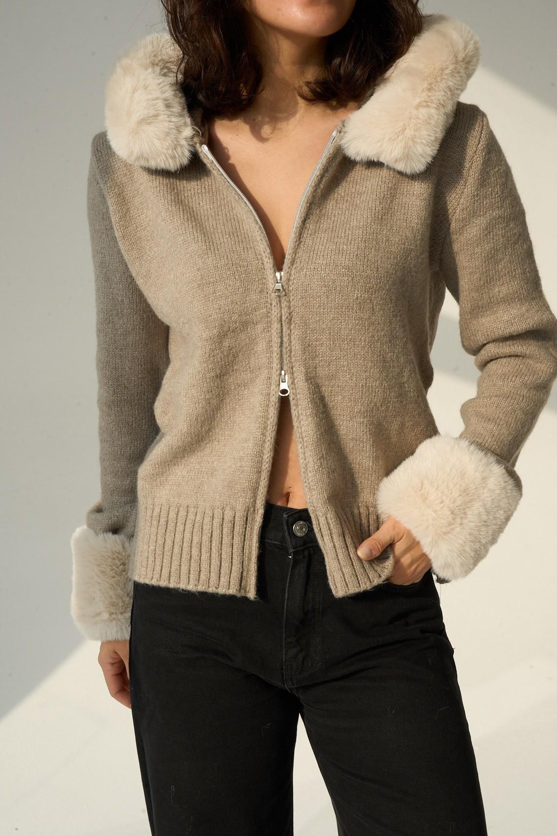 Kapüşonu Ve Kolları Kürklü Hırka QS251098