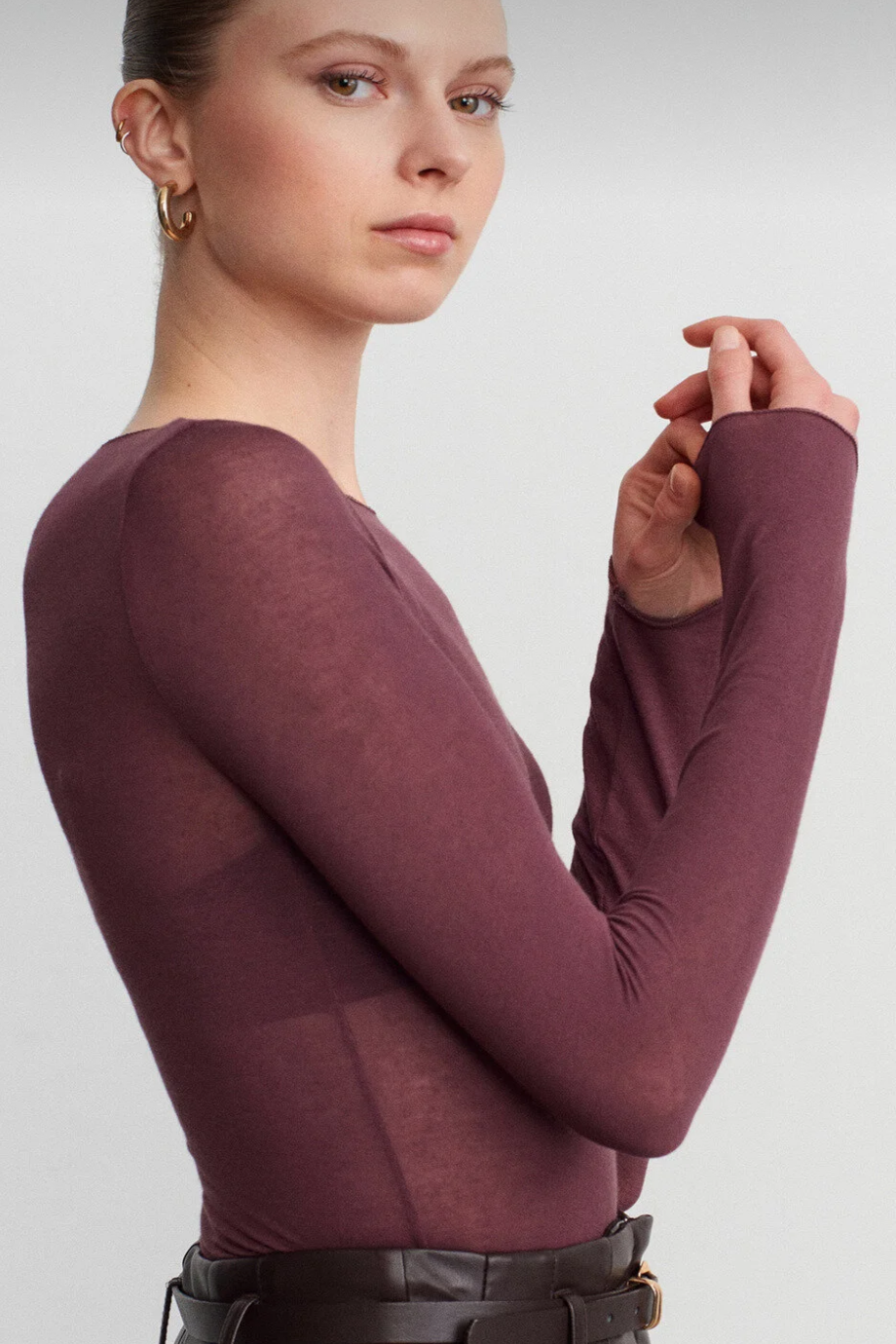 Kayık Yaka Modal Kumaş Transparan Bluz DL32122