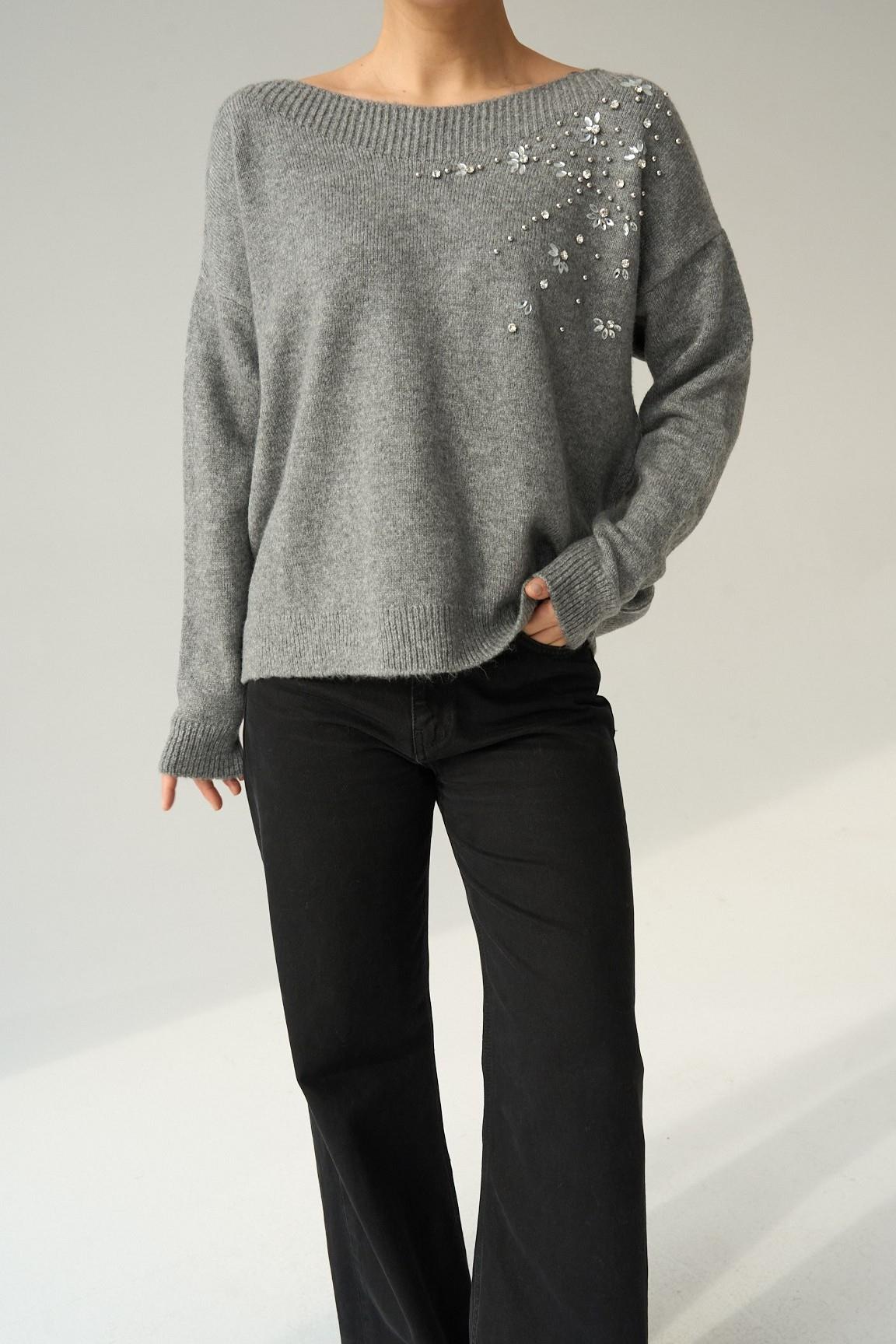 Kayık Yaka Taş Aksesuarlı Kazak QS251189
