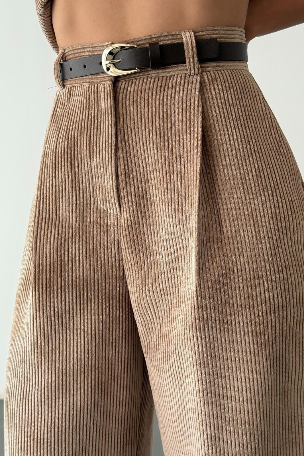 Kemer Detaylı Fitilli Kadife Pantolon 01246