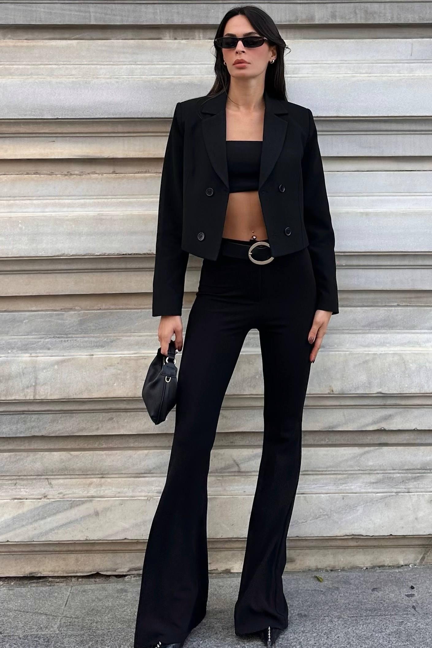 Kemerli Yüksek Bel İspanyol Paça Kumaş Pantolon MM9151 (5Y1MM0029151)