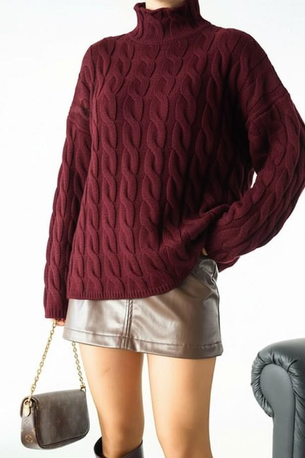 Kendinden Yakalı Saç Örgü Kazak QS241275