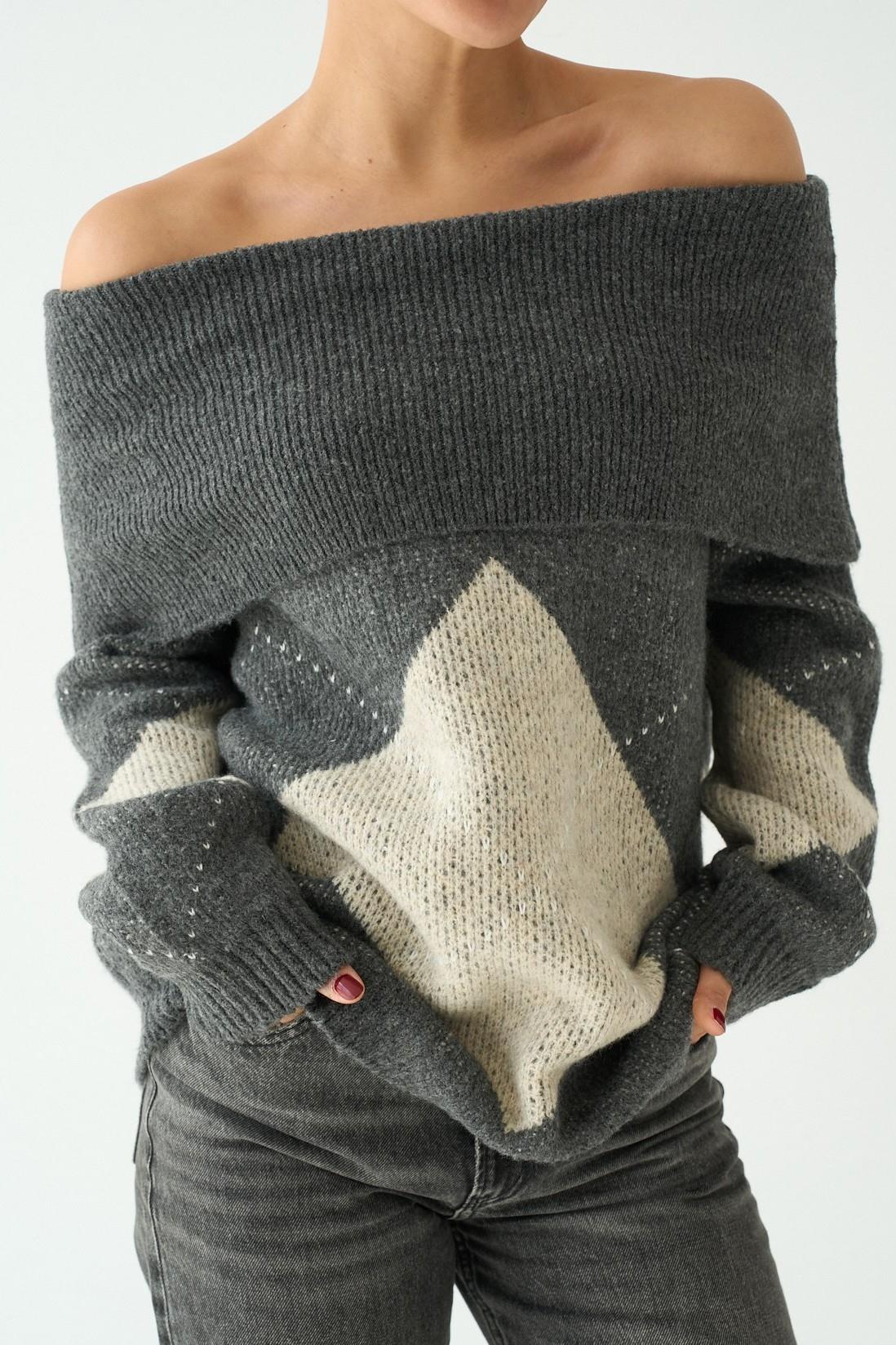 Omzu Açık Baklava Desen Kazak QS251135
