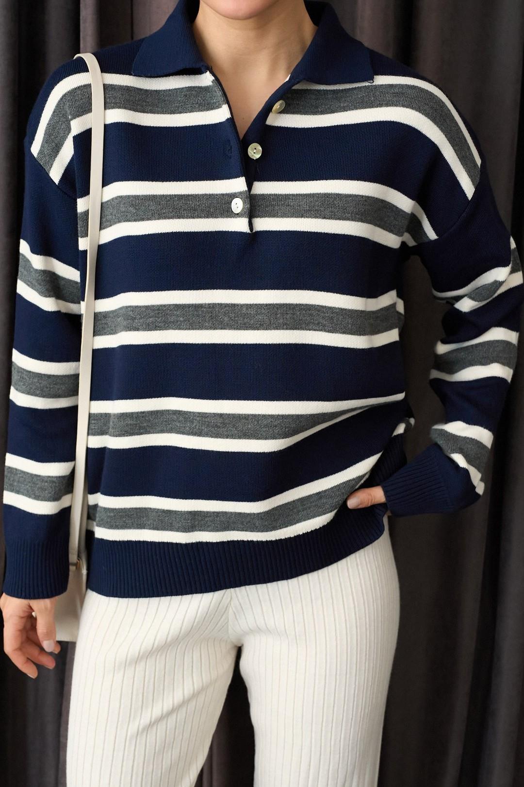 Polo Yaka Düğme Detaylı Uzun Kollu Kazak QS241184