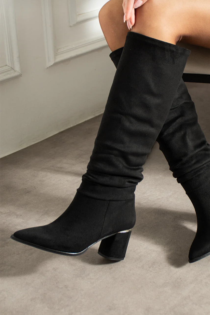 Sivri Burun Parlak Topuk Detaylı Büzgülü Çizme SGB037
