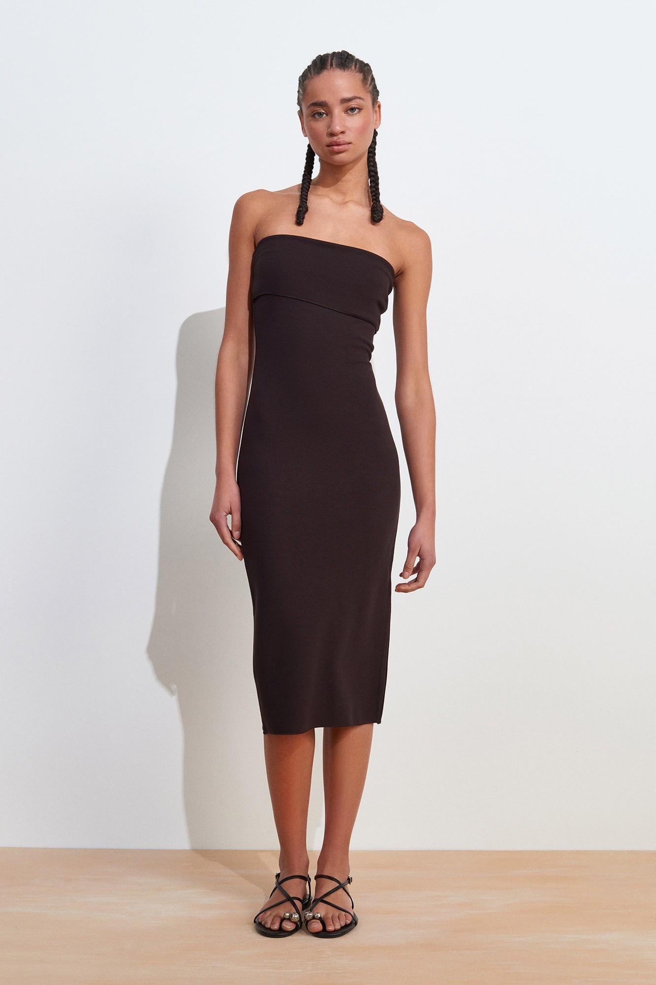 Straplez Katlı Triko Midi Elbise DL91422 (5Y1DL0069142)