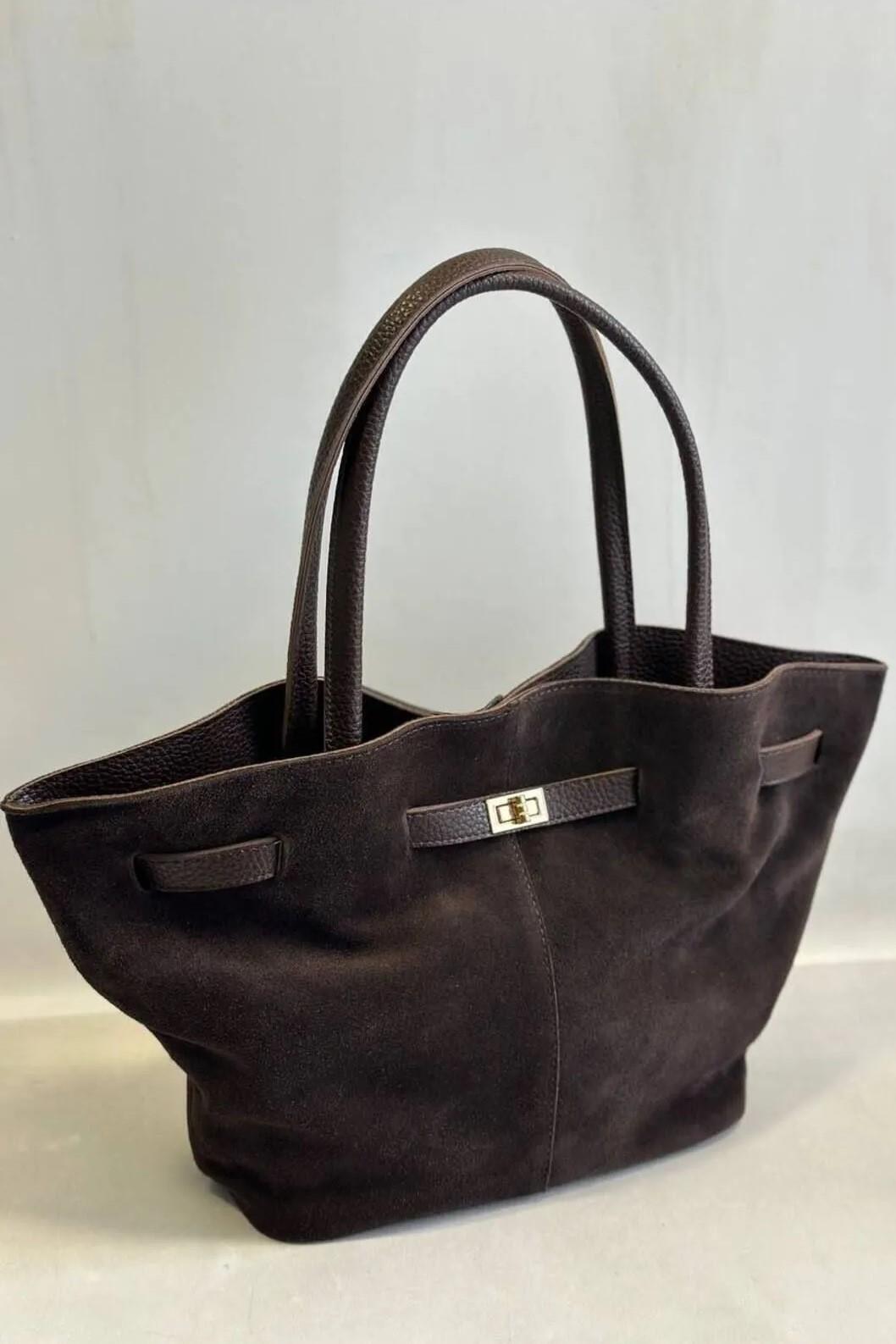 Süet Metal Aksesuarlı Deri Saplı Çanta RY254