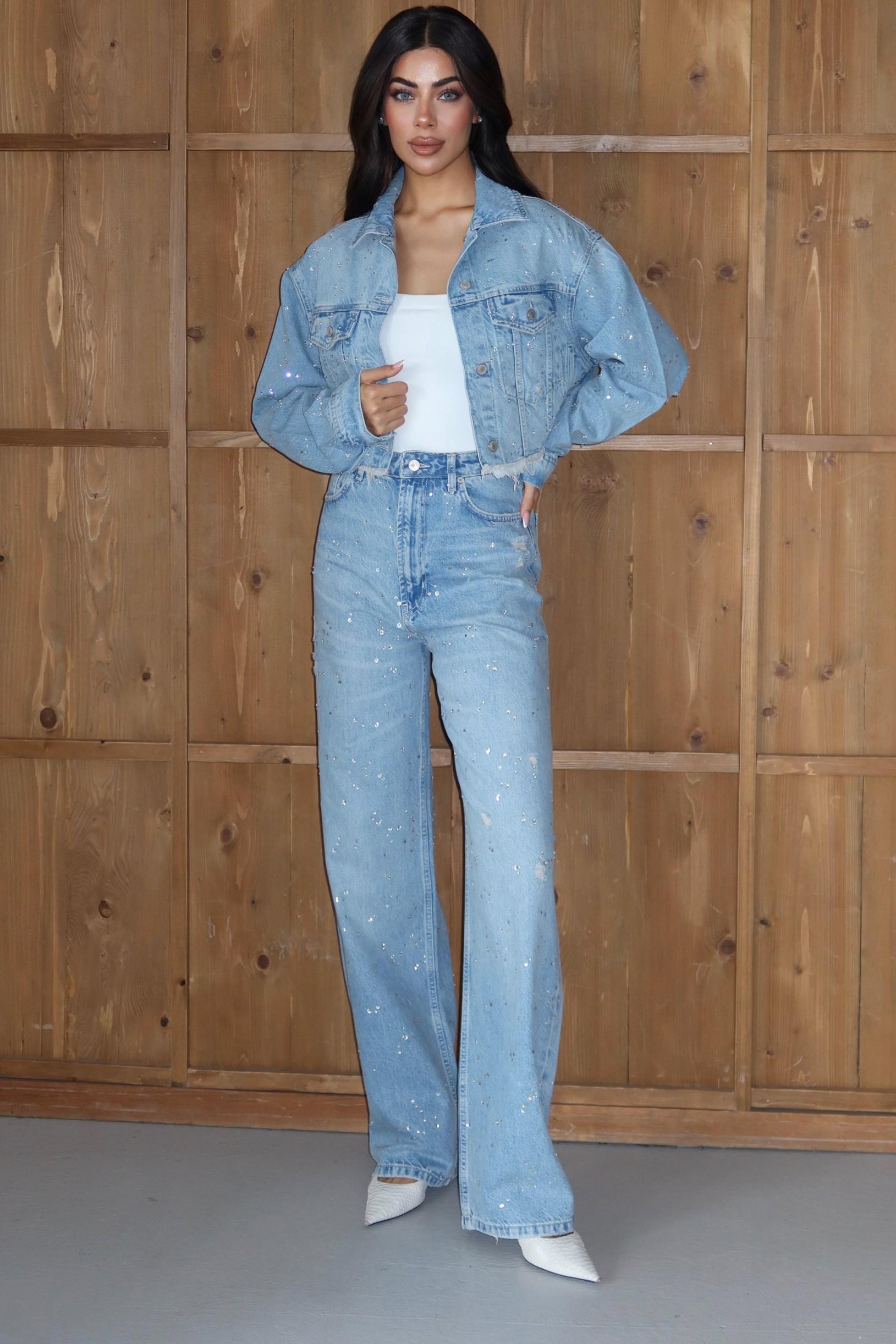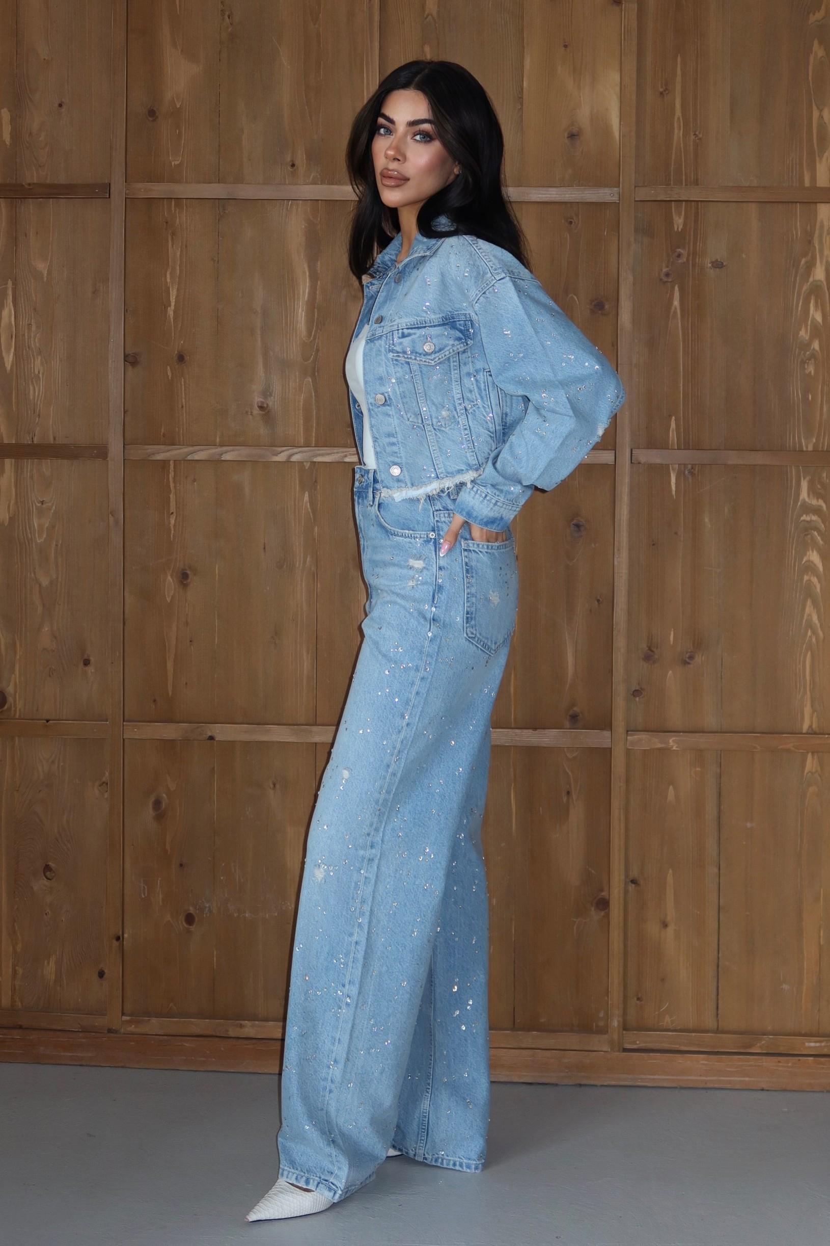 Taş Detaylı Crop Ceket Pantolon Takım LC8168