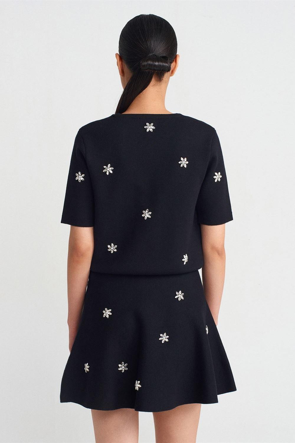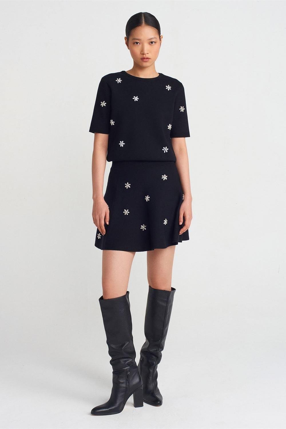 Taş İnci Nakışlı Kazak Beli Lastikli Etek Takım DL10683 (5K1DL1310683)