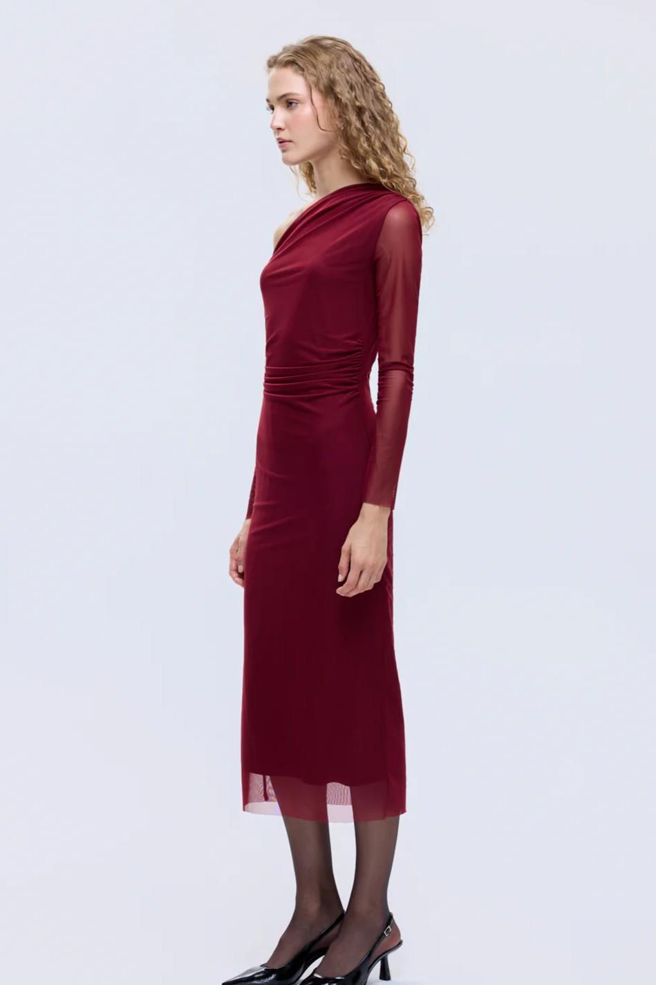 Tek Omuz Tül Elbise QZ31942