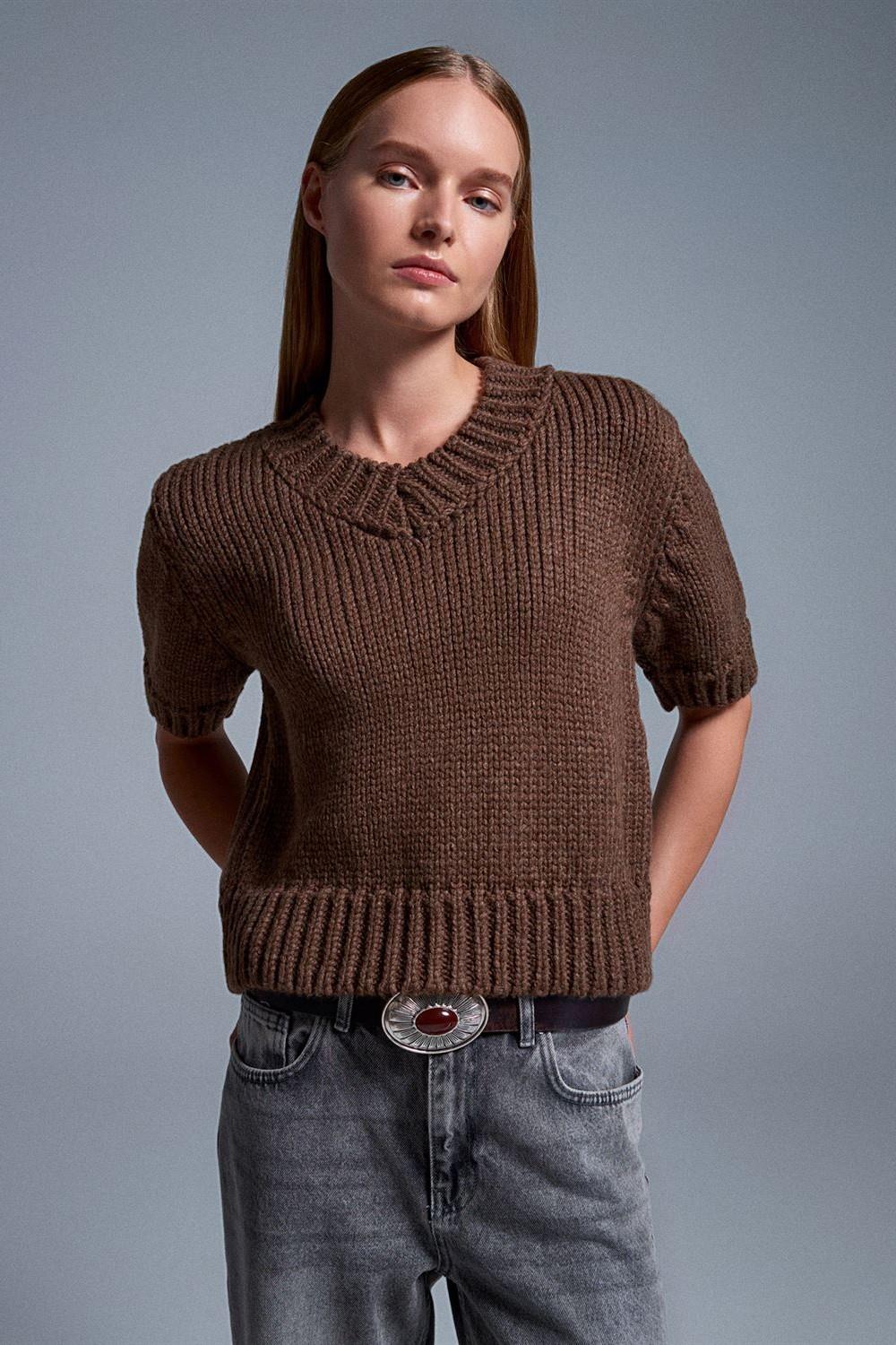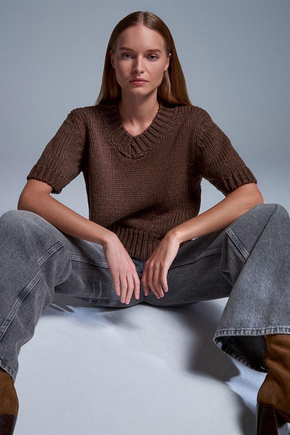 V Yaka Kısa Kollu Triko Kazak DL10831