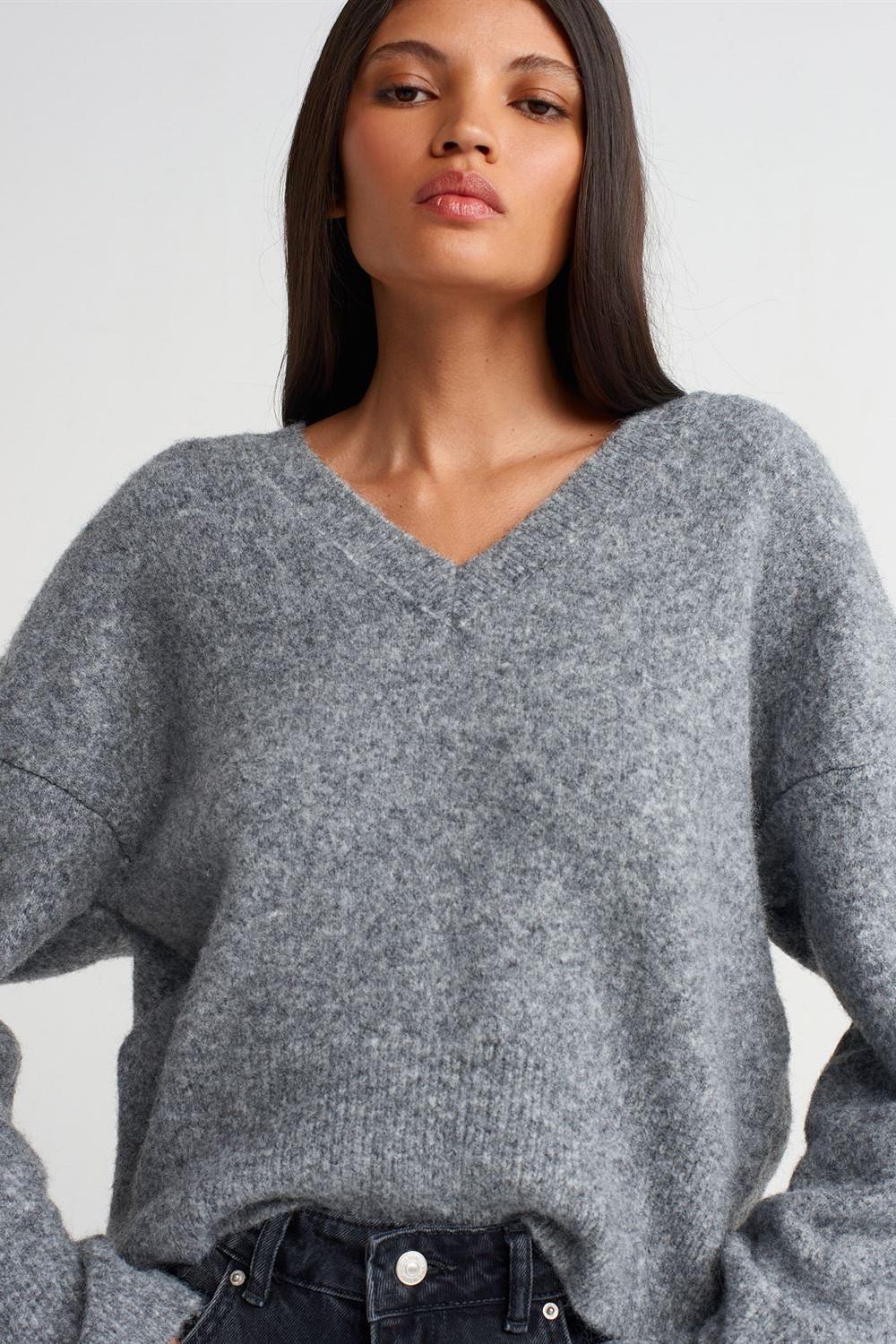 V Yaka Yumuşak Dokulu Triko Kazak DL10645