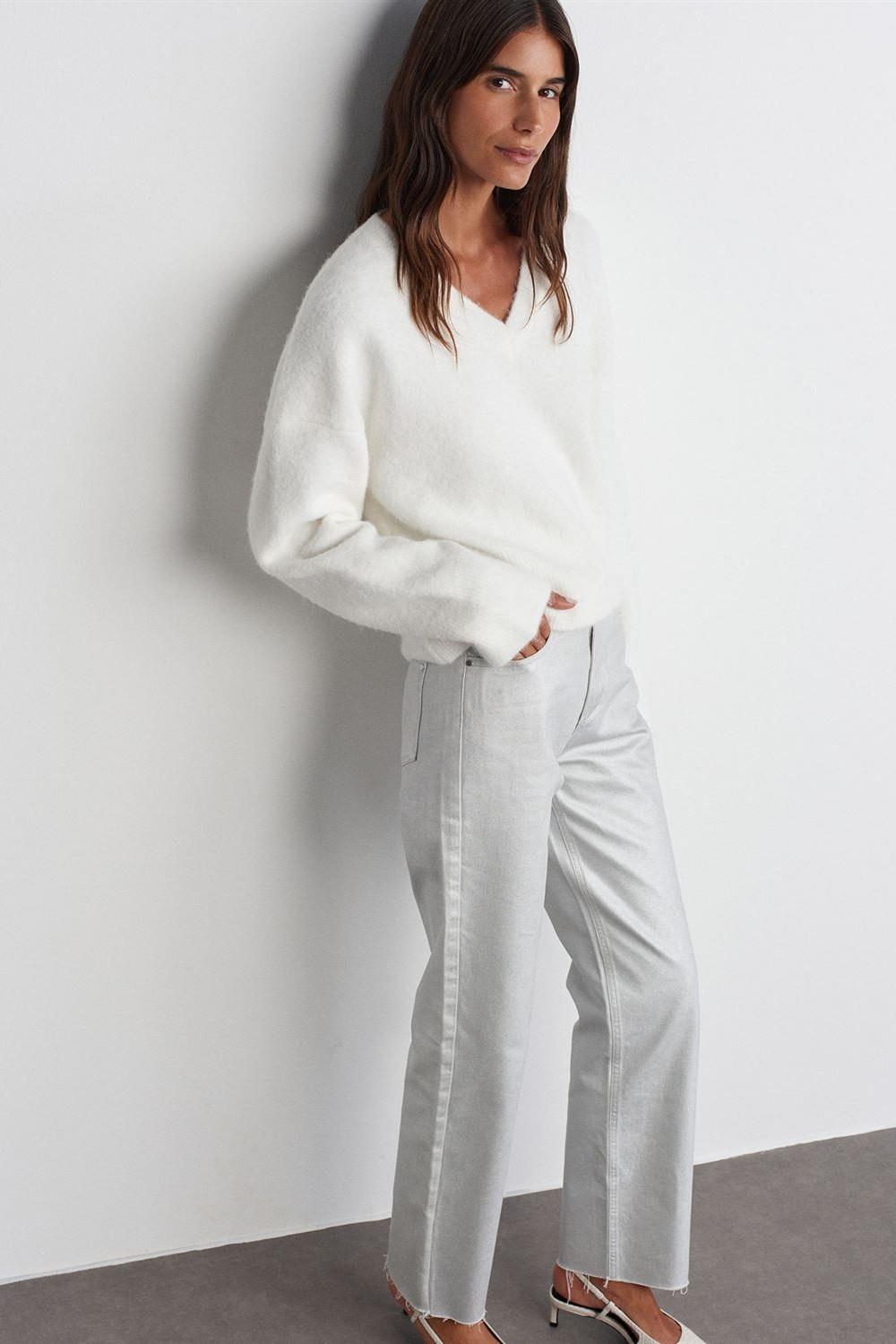 V Yaka Yumuşak Dokulu Triko Kazak DL10645