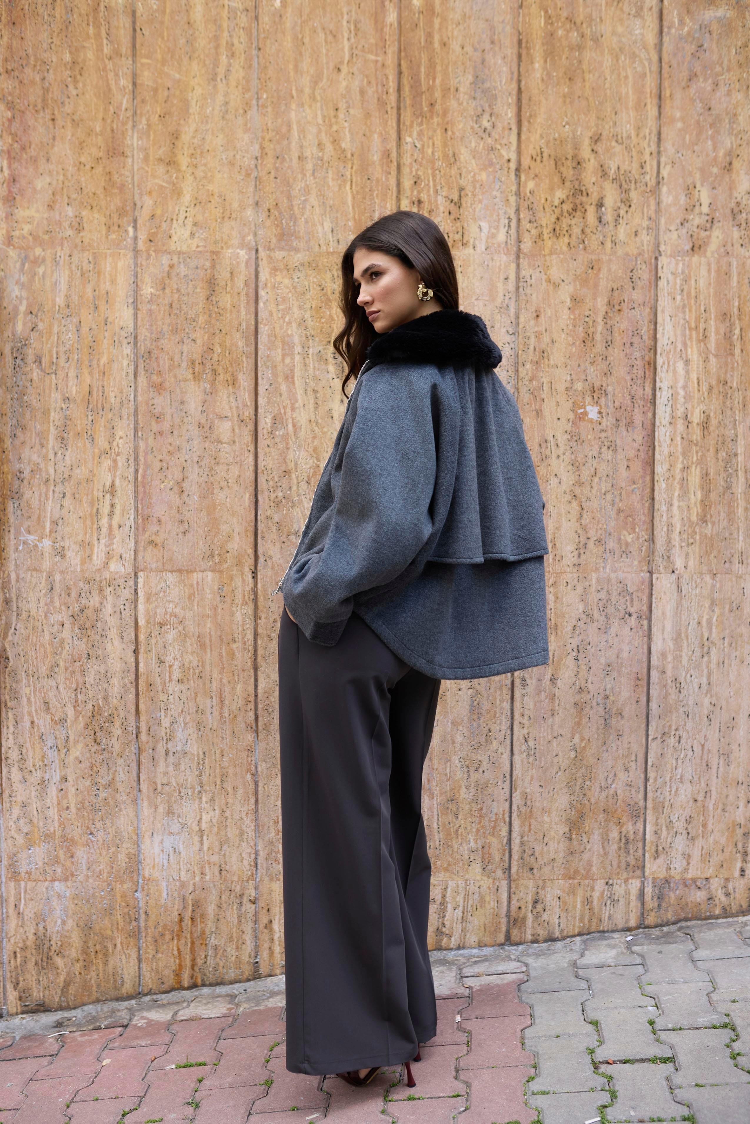 Yakası Kürklü Kaşe Mont PR9660