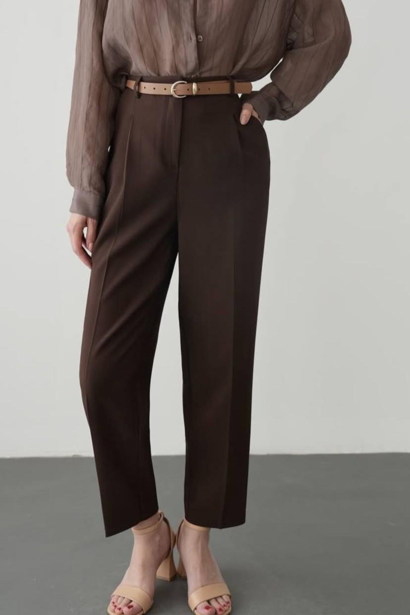 Yüksek Bel Kemerli Pensli Pantolon QZ00430