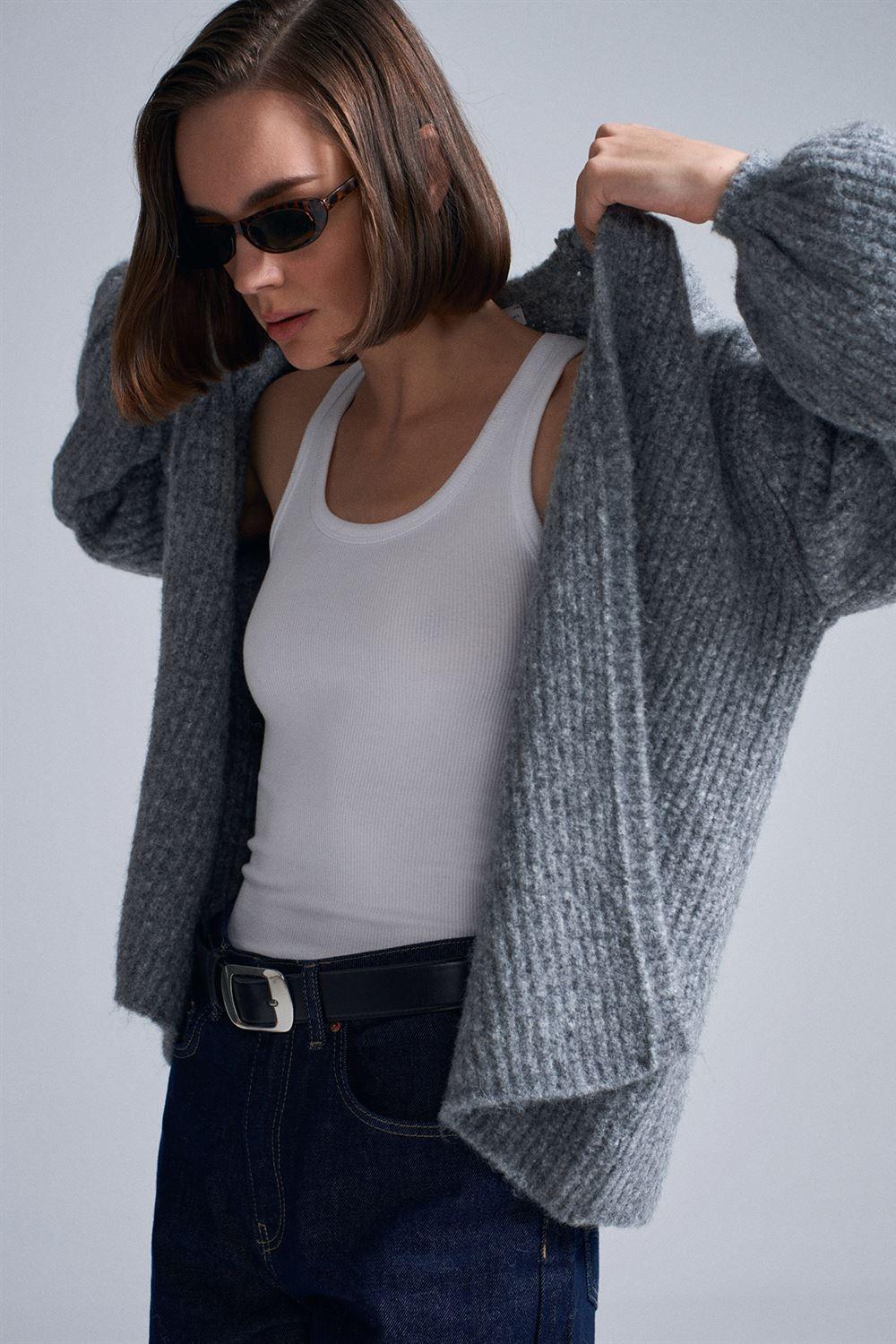 Yumuşak Dokulu Dökümlü Triko Hırka DL60991