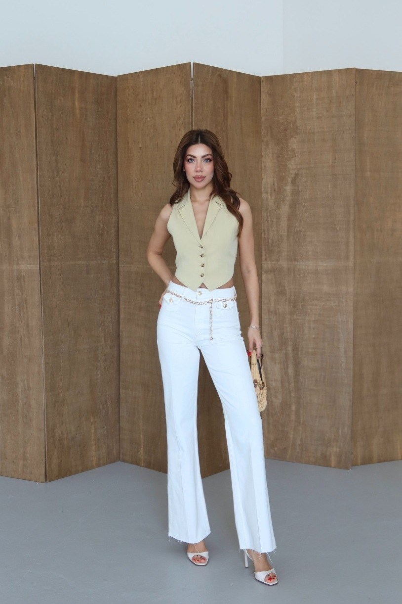 Zincir Kemerli Cep Detaylı Wide Leg Jean LC8158